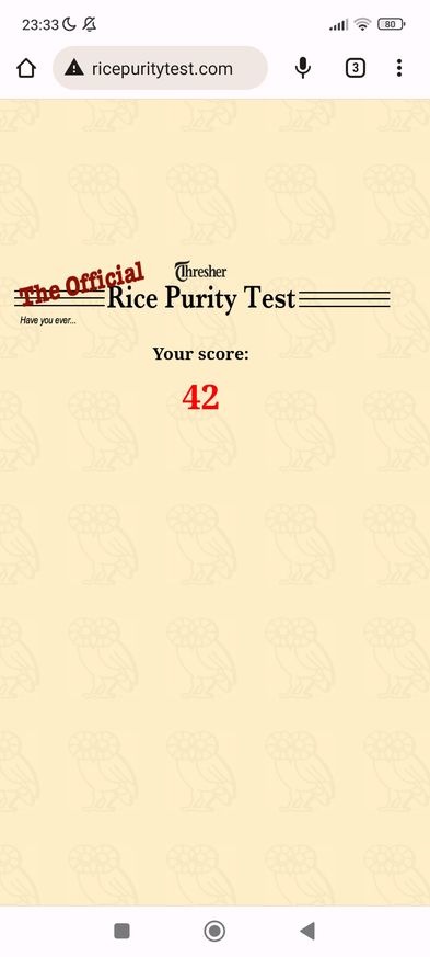 Kennt ihr bzw. habt ihr schon mal den Rice Purity Test gemacht? đ Wenn ja was war euer Ergebnis? đïž